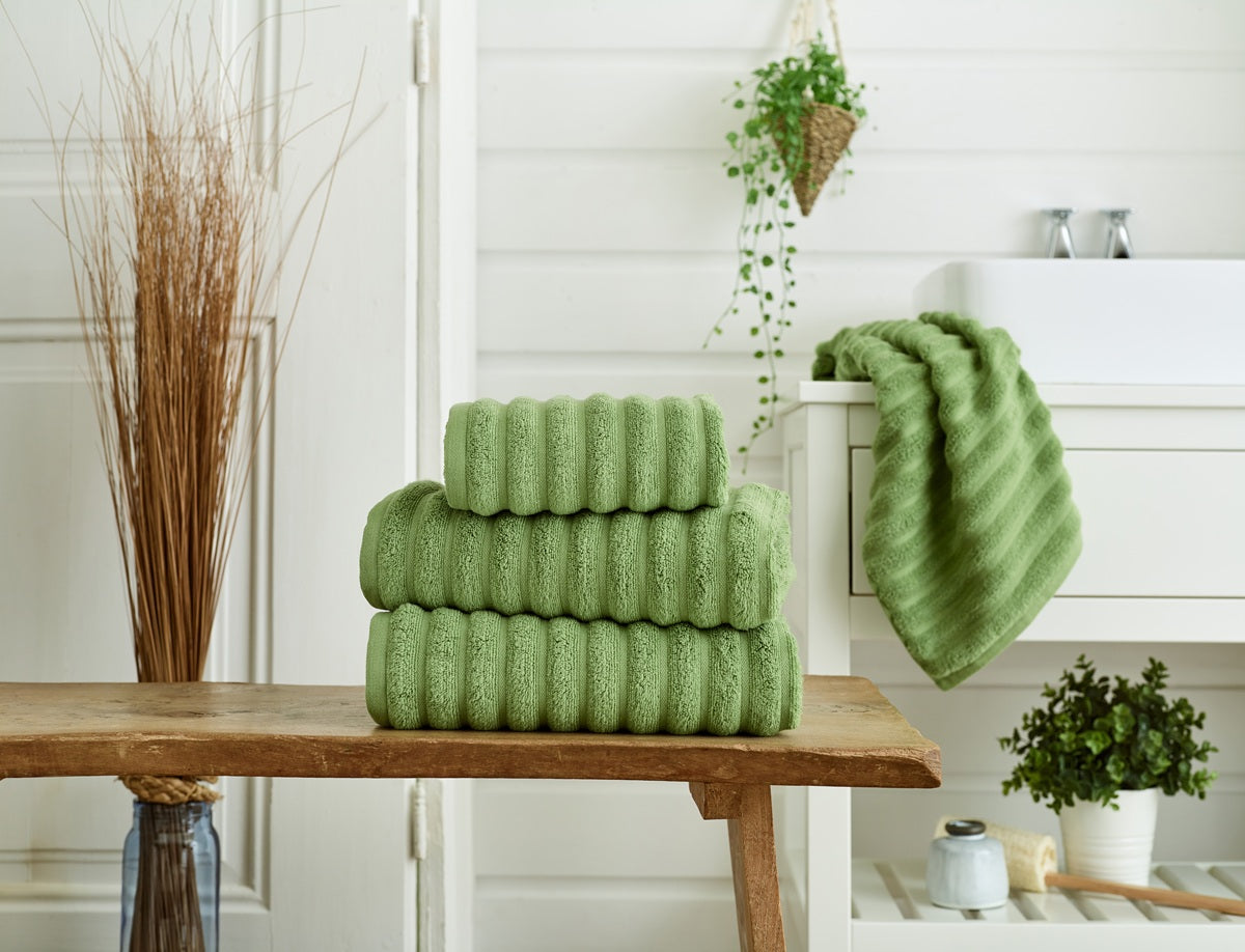 The Lyndon Company Hamilton Soft Rib Zero Twist 100% Cotton 550gsm Green Tea Towels